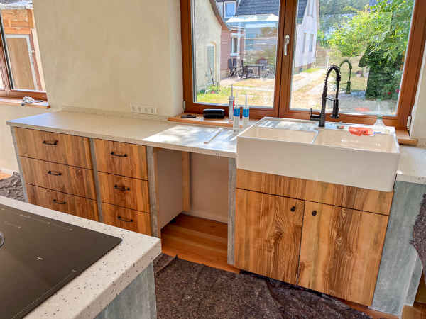 Küche Fronten massiv Esche, Arbeitsplatte Mineralwerkstoff
