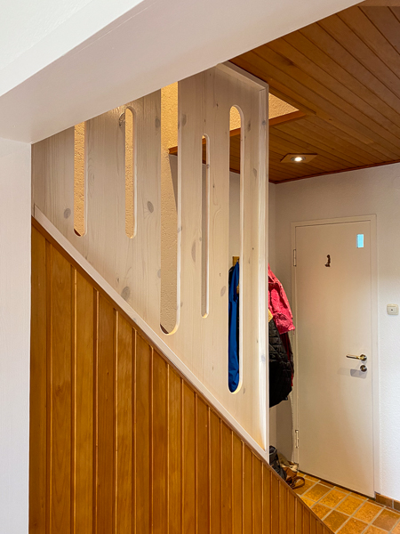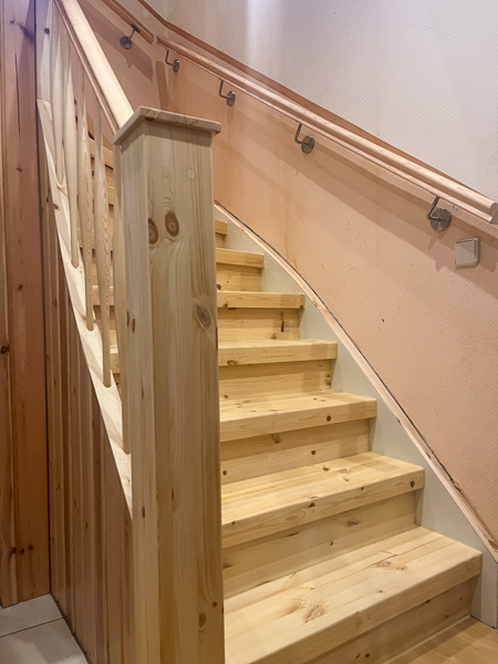 Treppensanierung (Kiefer) massiv, Geländer, Treppenstufen, Setzstufen